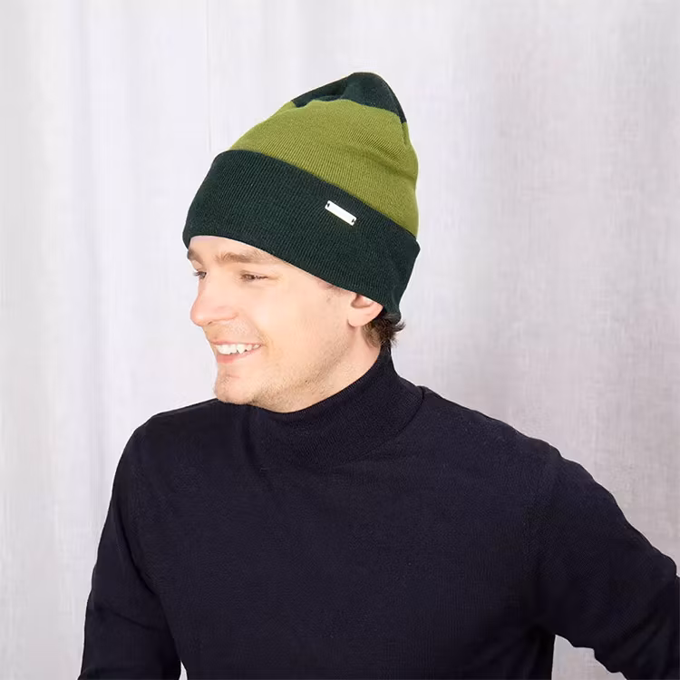 Slitstark mössa i merinoullsblandning stickad i två färger.