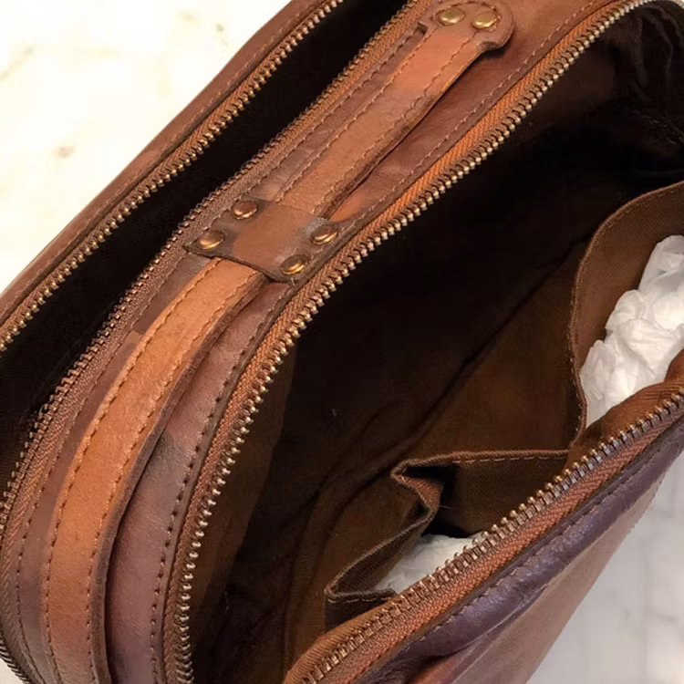 Necessär med en rå vintage-look tillverkad av rejält läder.