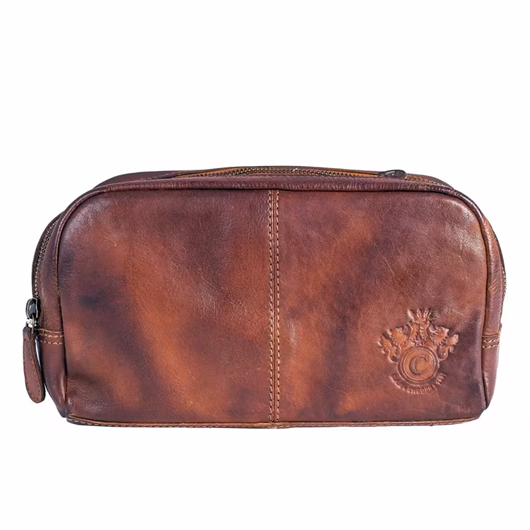 Necessär med en rå vintage-look tillverkad av rejält läder.
