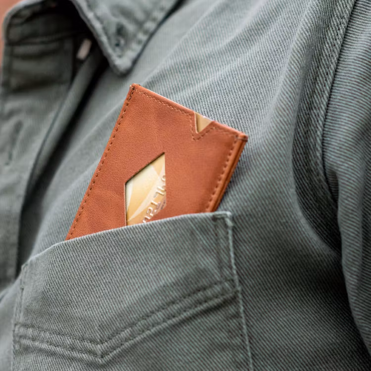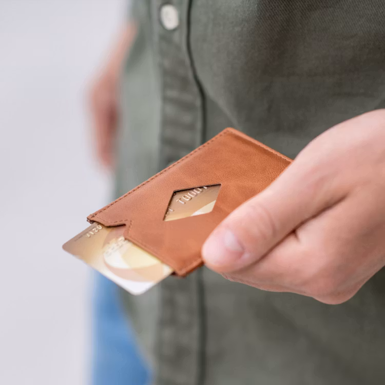 Liten, praktisk och elegant korthållare designad för 3 kort.