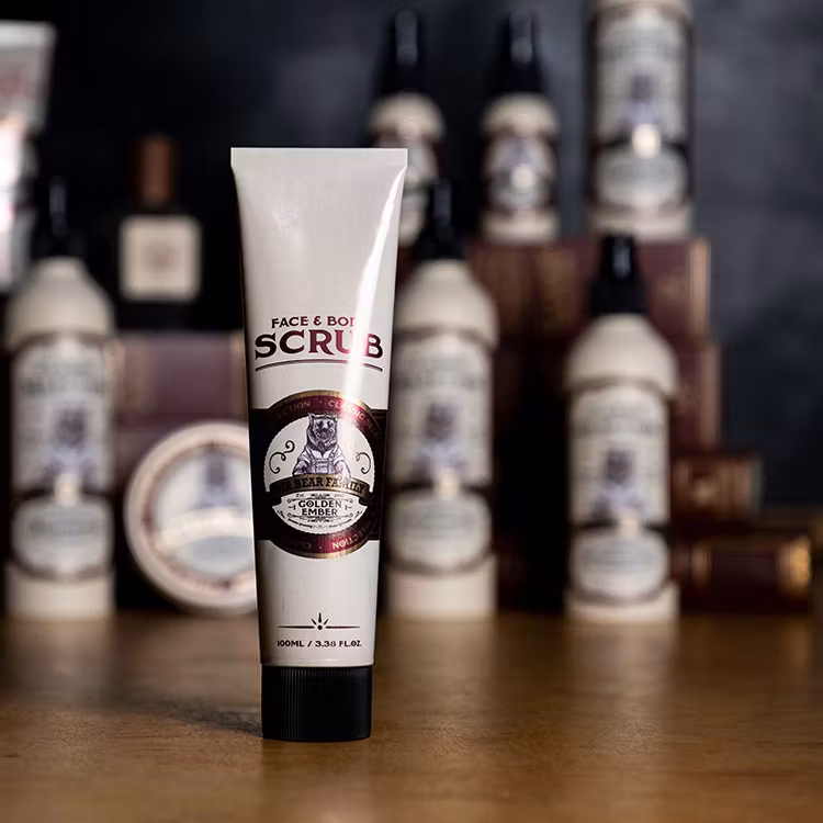 Mr Bear Family Face & Body Scrub Golden Ember är en fantastisk ansikts- och kroppsskrubb som exfolierar huden och tar bort smuts från porerna. Den innehåller signaturingrediensen tistelolja och björklövsextrakt som är lugnande för huden samt kiseldioxid som försiktigt rengör din hud och lämnar den mjuk och välmående.