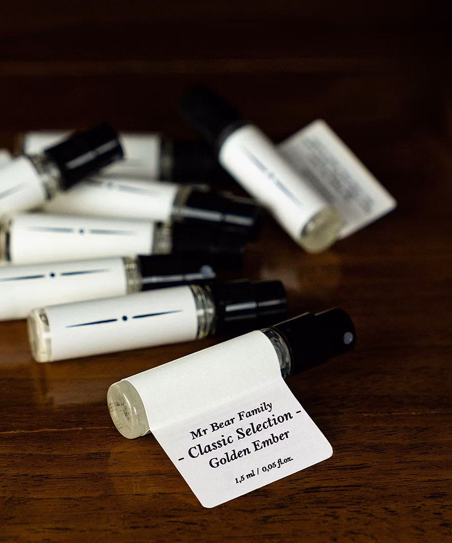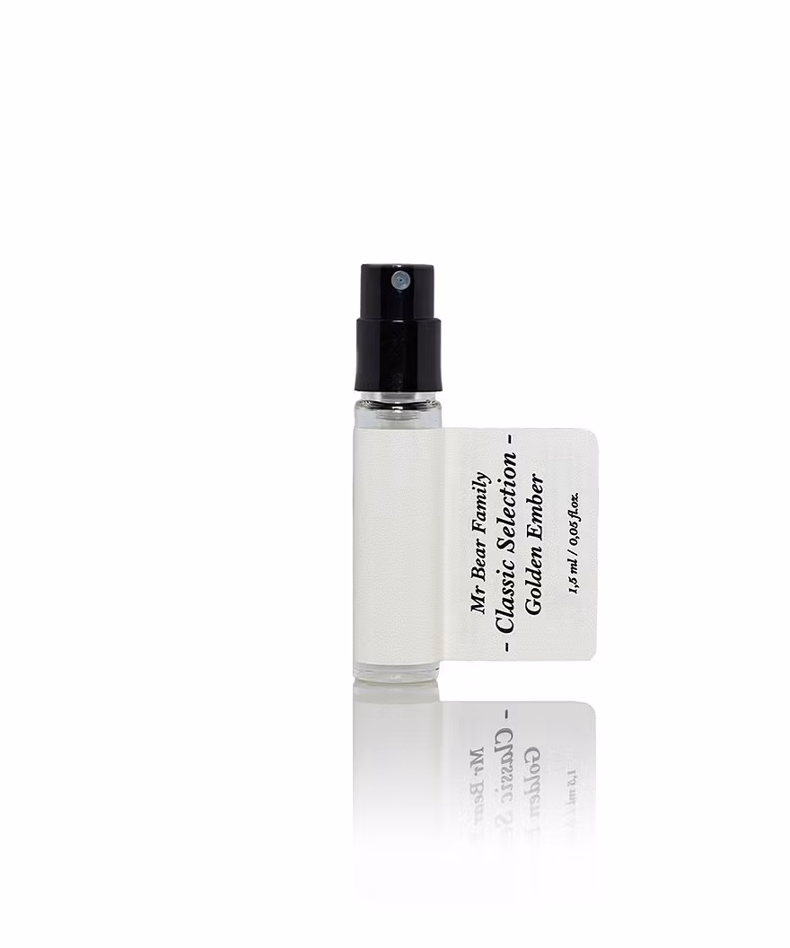 Mr Bear Family Parfume Golden Ember är en tidlös doft för den moderna herren. När Mr Bear arbetade med att ta fram denna letade han efter en klassisk men ändå personlig doft. Något som skulle framkalla den varma känslan av ett gammalt bibliotek med en öppen spis samtidigt som han höll kvar en fot i naturen. Nu finns den äntligen i en praktisk teststorlek så att du kan känna hur den passar på just dig innan du köper en hel flaska.