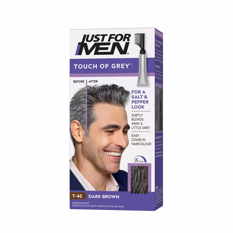 Just For Men Touch of Grey är en serie hårfärger för män som vill tona ner det gråa håret utan att det försvinner helt. Den fungerar gradvis och låter dig behålla lite grått för det perfekta utseendet. För män som vill se ut som sitt allra bästa jag men inte bli av med allt grått.