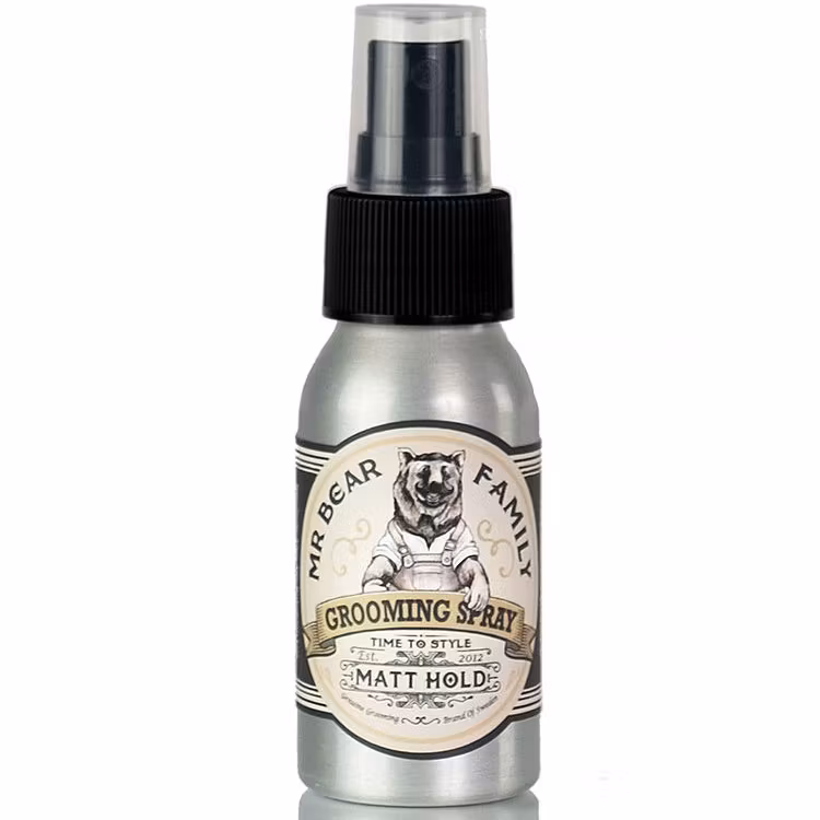 Mr Bear Family Grooming Spray Matt Hold fungerar både som snabb och enkel styling och som en pre-styler eller finishprodukt. Kort sagt är det en spray som alltid är bra att ha med sig. Den nya resestorleken passar dessutom perfekt om du vill prova den utan att köpa en stor flaska.