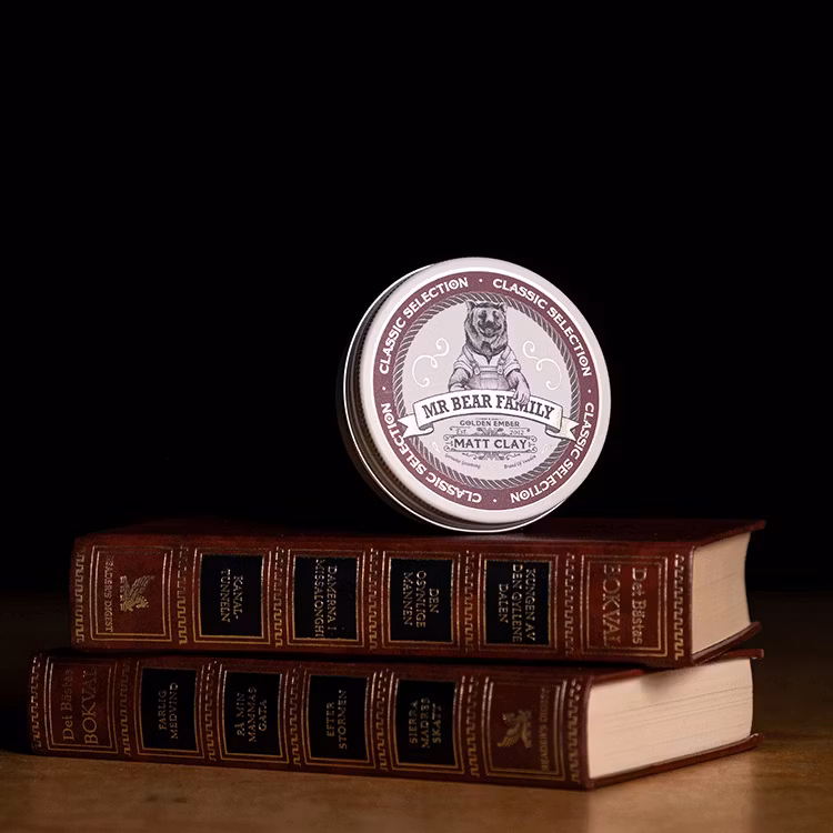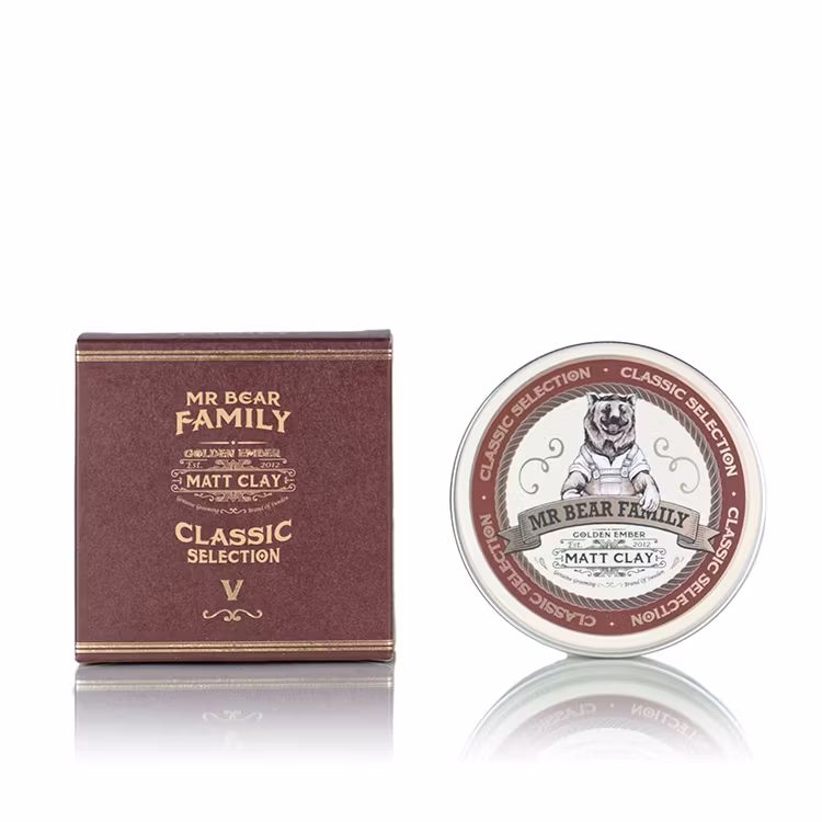 Mr Bear Family Pomade Matt Clay Golden Ember är en vattenbaserad pomada som ger en matt finish. Med noggrant utvalda naturliga ingredienser som bentonit ger den håret en fylligare look med mycket volym. Den innehåller även tistelolja och björklövsextrakt som stimulerar blodcirkulationen i hårbotten och stärker håret.