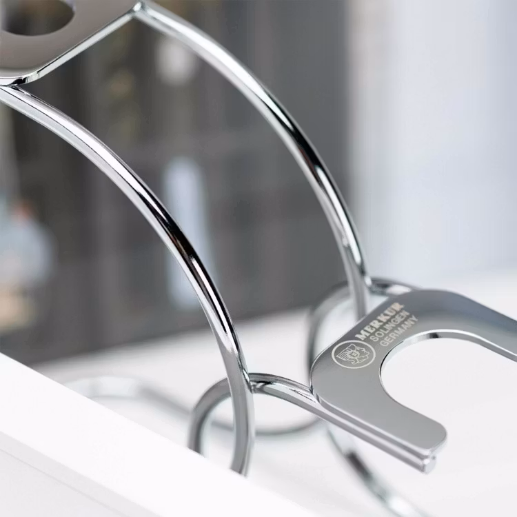 Högblankt förkromat rakställ för dina rakverktyg.