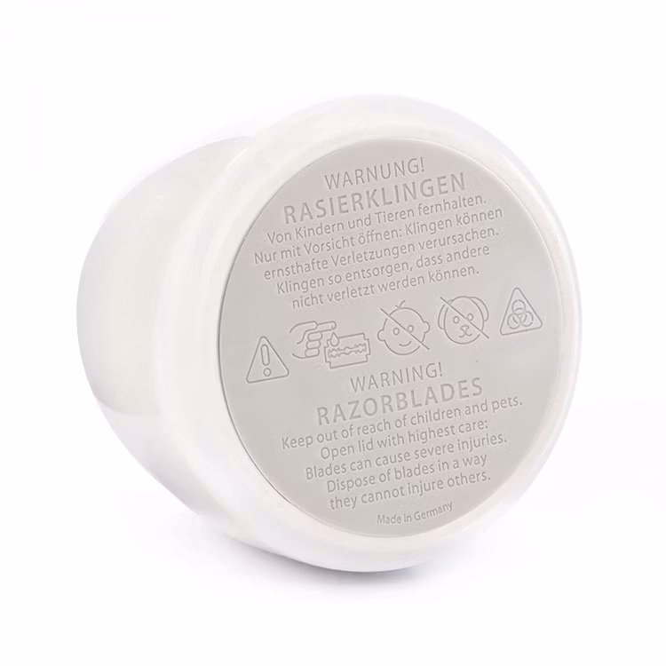 Snygg behållare i porslin för använda rakblad. Minskar skaderisken och en must-have i din plastfria rakrutin!