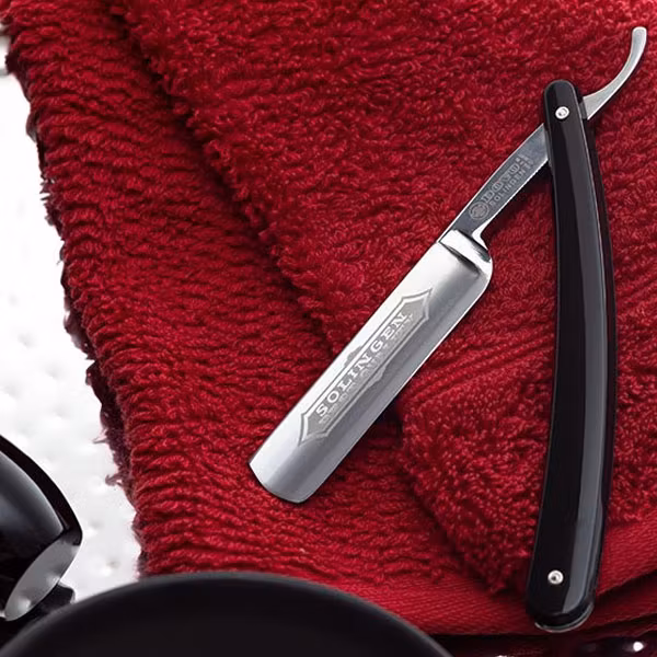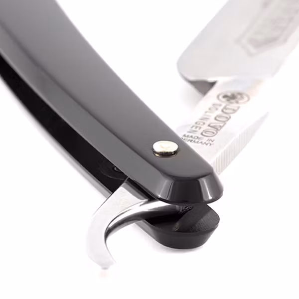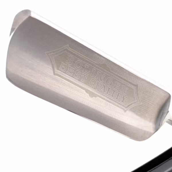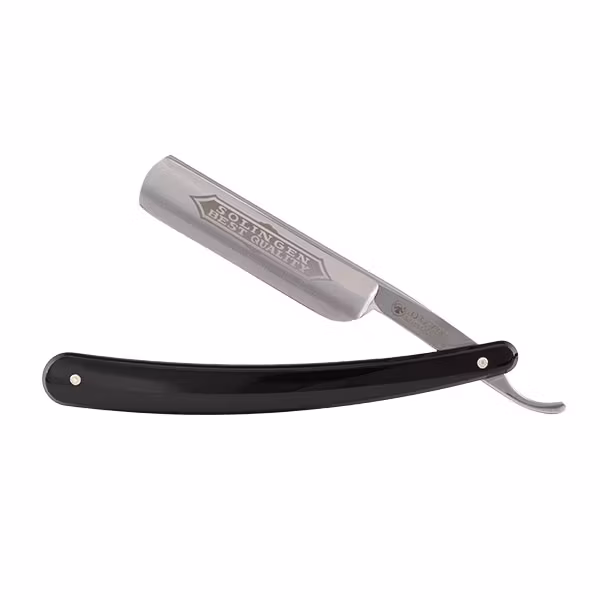 Rakkniv i kolstål med handtag i svart akrylglas. 5/8" med halvt skålslipat blad.