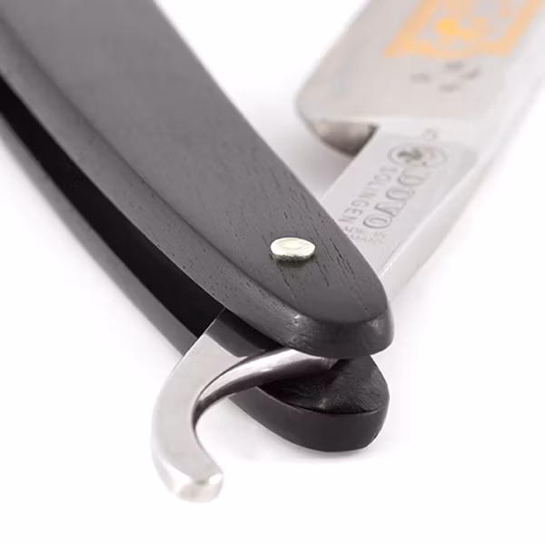 Rakkniv i kolstål med handtag i ebenholts. Storlek 5/8" med halvt skålslipat blad.