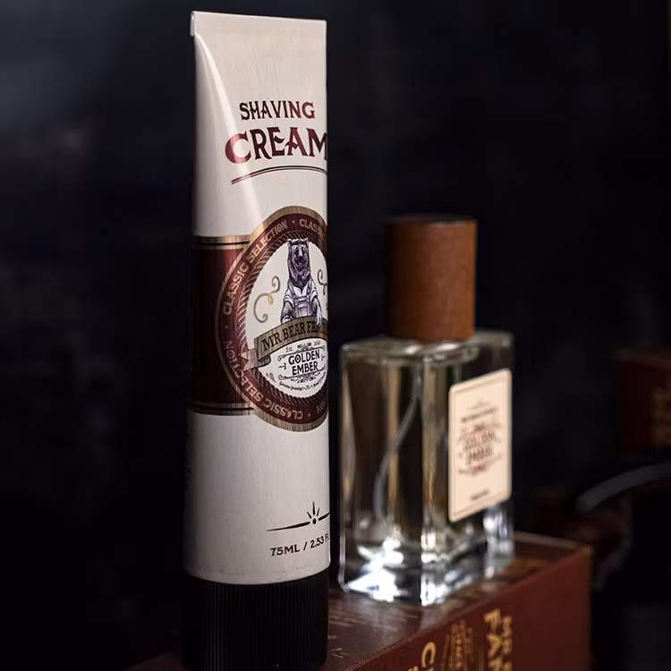 Mr Bear tog det han lärde sig av att göra en traditionell raktvål och applicerade det på rakkrämen. Han ville behålla den traditionella kvalitet som man får med en raktvål samtidigt som han ville få till den användarvänlighet som man får med en rakkräm. Resultatet blev Rakkräm: Golden Ember. Den är mycket lätt att använda samt ger dig en nära och behaglig rakning. När du löddrar upp den kan du helt enkelt använda dina händer, eller unna dig själv och använda en rakborste.