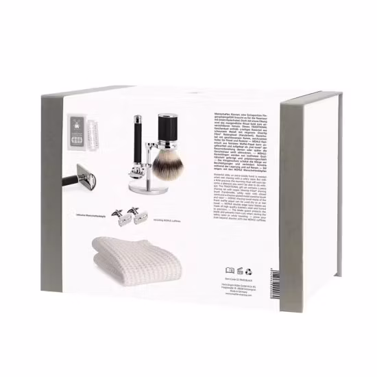 Alla dessa fina detaljer levereras i en snygg presentbox, perfekt för att ge bort som en minnesvärd gåva till någon speciell eller som en lyxig behandling för dig själv. Upplev lyxen och precisionen med Mühle Traditional Gift Set Black och omdefiniera din dagliga rakningsritual.