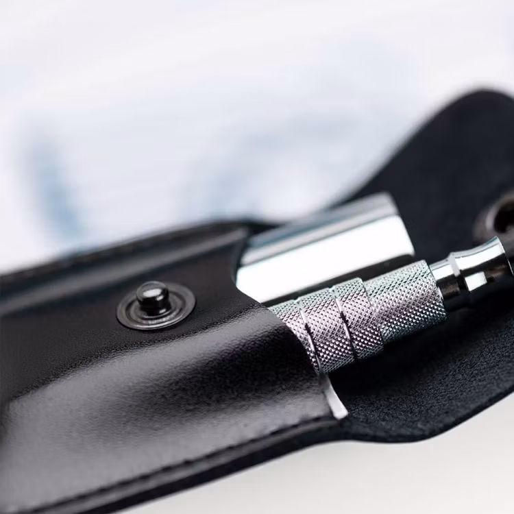 Smidigt fodral med en kompakt reserakhyvel och rakblad.
