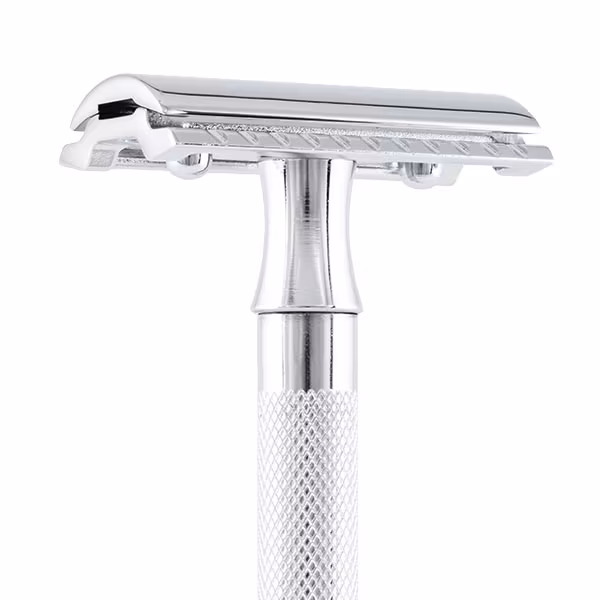 Klassisk säkerhetshyvel med längre handtag.