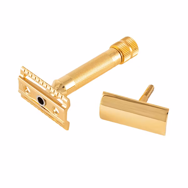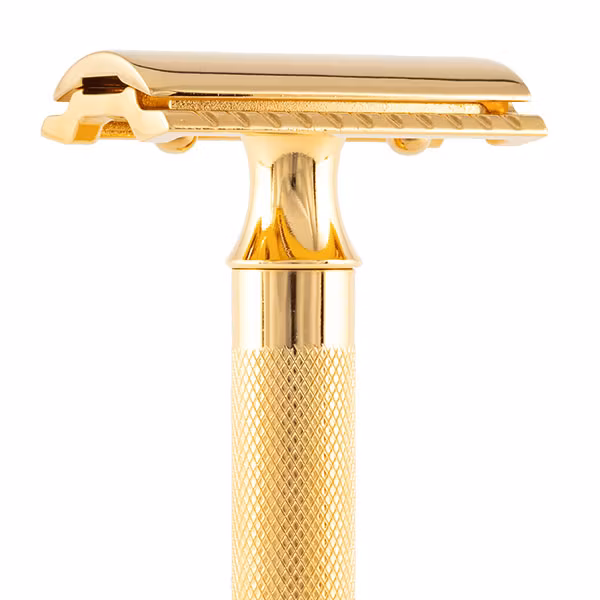 Guldpläterad säkerhetshyvel i omtyckt tyngre HD-modell.