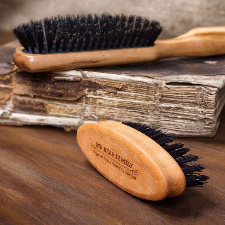 Förutom att använda rätt typ av skäggvårdsprodukter är det viktigt att borsta igenom skägget dagligen för ett frisk, välmående och snyggare skägg. Borststråna lyfter bort damm, smuts och partiklar och efterlämnar ett jämnt, friskt och glänsande skägg. Det kan vara riktigt bra att borsta igenom skägget efter att du applicera skäggolja eller balsam för att nå ner ända till hårrötterna och få en jämnare fördelning över alla skäggstrån. Borstningen ger även en skonsam massage vilket sätter ökar blodcirkulationen och minimerar klåda och irritation i huden under skägget.